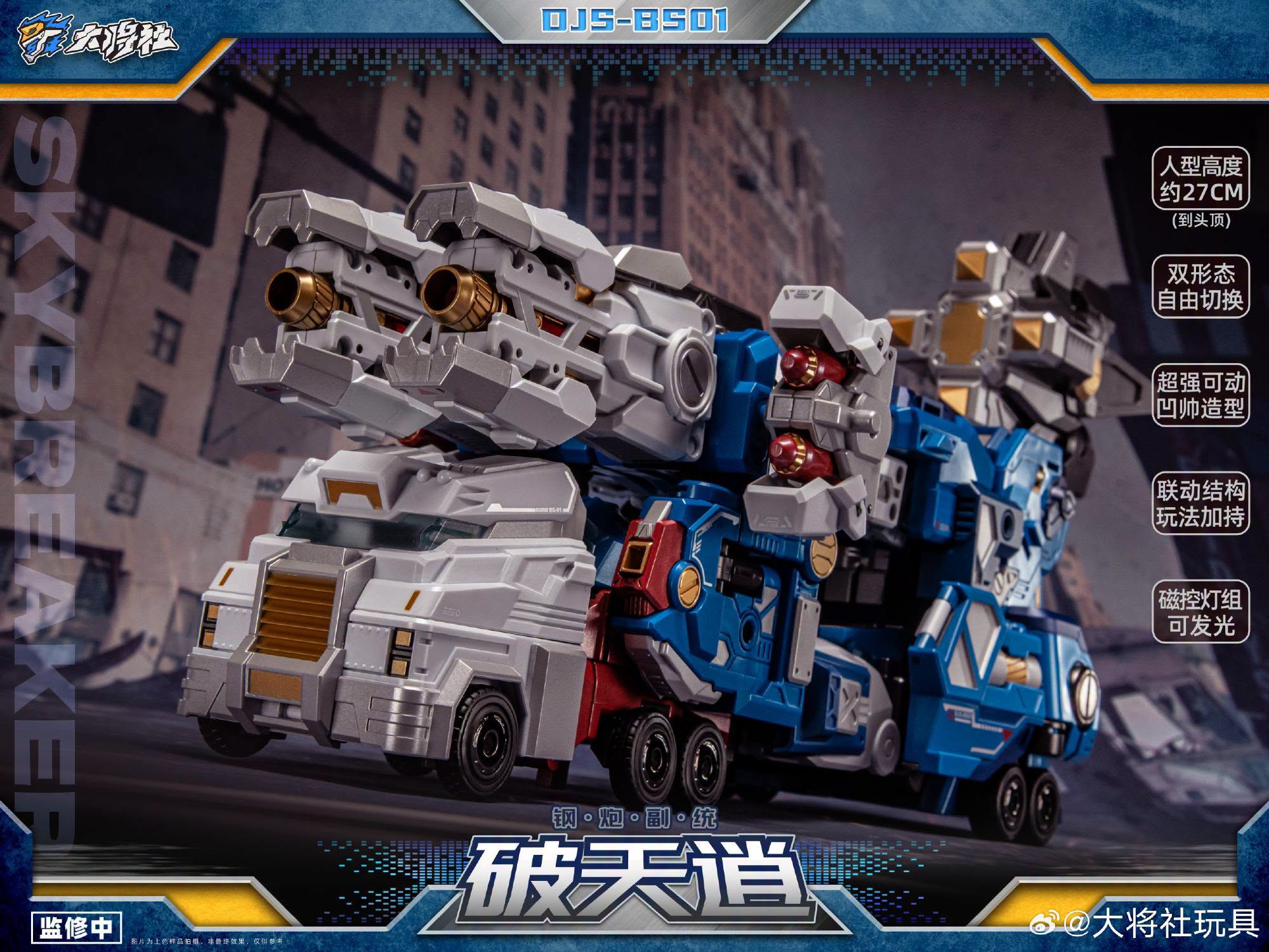 El DJS-BS01 Skybreaker mide poco menos de 11 pulgadas de alto y se transforma de City Commander a figura de acción robótica articulada y de gran detalle.