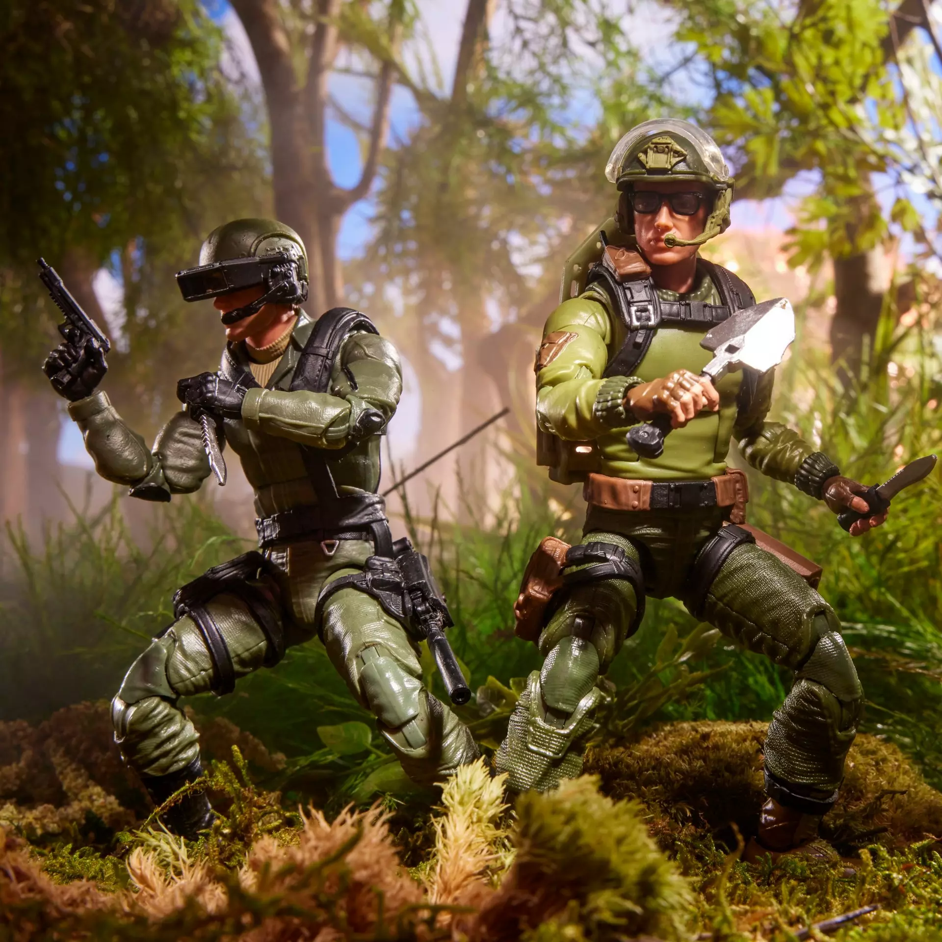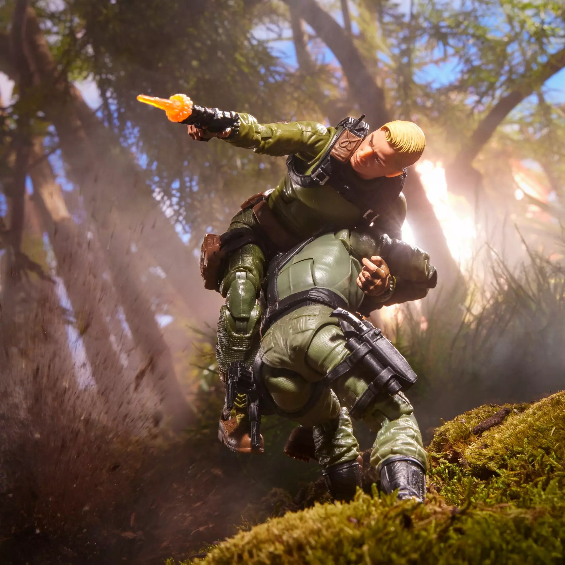Los valientes miembros de G.I. Joe están preparados para buscar a Cobra en cualquier entorno del planeta. Desde selvas hostiles hasta picos árticos cubiertos de hielo… dondequiera que haya problemas, G.I. Joe está allí. Nuevo en la línea G.I. Joe Classified Series, Ralph ‘Steeler’ Pulaski & Short-Fuze viene listo para la aventura, con múltiples puntos de articulación para una alta posabilidad. Este set de figuras de Ralph ‘Steeler’ Pulaski & Short-Fuze está repleto de 29 piezas de accesorios inspiradas en personajes. Steeler viene con casco, cuchillo, 9 efectos de explosión y accesorios para armas. Short-Fuze viene con cuchillo, herramienta de atrincheramiento, gafas extraíbles, casco, mortero con base y cohete, mochila y accesorios para armas.