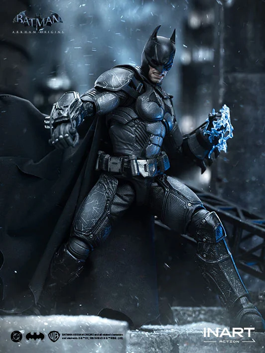 Presentado por INART, una marca dedicada a alcanzar el más alto nivel mundial de arte escultórico, Batman del juego Batman: Arkham Origins finalmente llega como una figura de acción a escala 1/12 muy esperada. Capturando la intensidad cruda y la presencia ruda que era Batman en su juventud, con varios aspectos de daño de batalla en su traje, esta figura alcanza un nivel asombroso de detalle y densidad que desafía su escala 1/12.