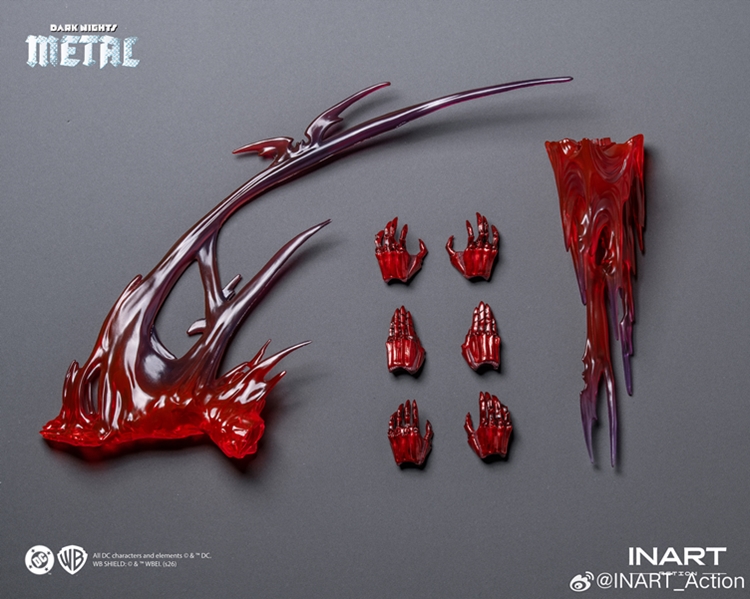 Esta figura INART a Escala Docea está oficialmente licenciada por Warner Bros. Discovery. El diseño de la figura de acción INART Action Batman: The Red Death rinde homenaje al origen retorcido del personaje con fuertes influencias automovilísticas en todo el diseño: armadura roja brillante y aerodinámica con forma de carcasa de coche; una placa pectoral que parece haber sido aplastada y reformada, creando una forma distorsionada con influencias vehiculares; así como una espalda inspirada en las rejillas y sistemas de refrigeración de los muscle cars. Estructuras mecánicas sutiles bajo el torso insinúan un potente motor interno dentro de este velocista. La energía inestable de la Fuerza de la Velocidad recorre el cuerpo de la Muerte Roja, dejando solo un rastro de rayos y murciélagos carmesí.