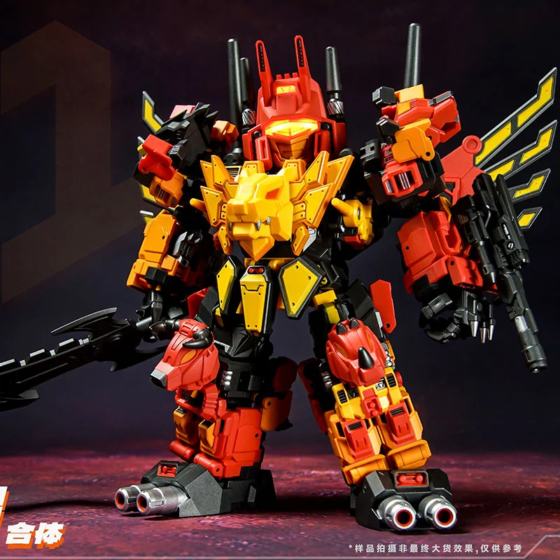 Laser Cat Toys Mini Ferocy se transforma de 5 bestias individuales al modo súper combinado y viceversa. Cada figura viene con armas y accesorios.