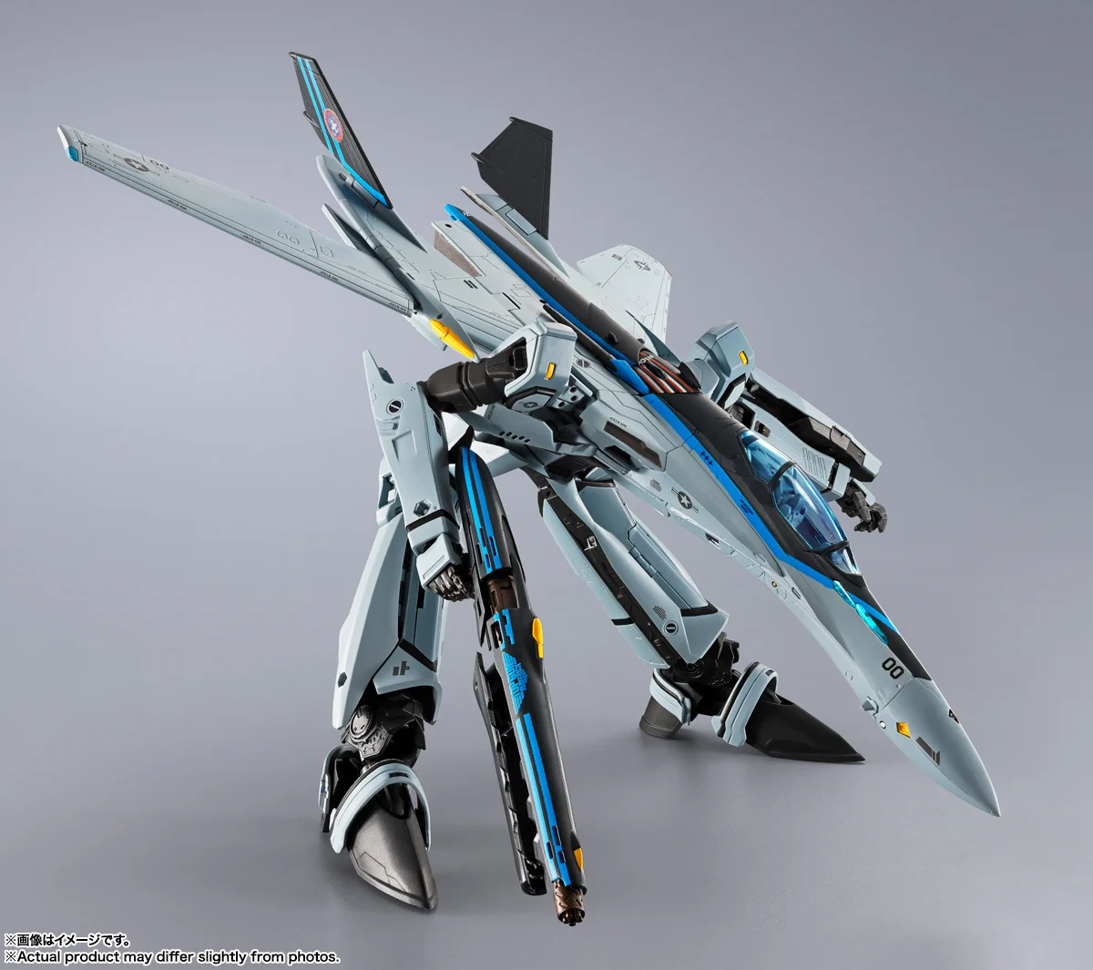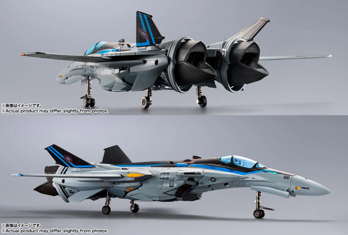 Con una altura aproximada de 9,84 pulgadas en modo robot, este especial Macross X Top Gun VF-25 presenta el diseño característico del casco Pete »Maverick» de los Mitchell y los colores jet de los Mitchells. Transformándose de Battroid a caza y viceversa, el VF-25 está fabricado en ABS, PVC y construcción de fundición a presión.