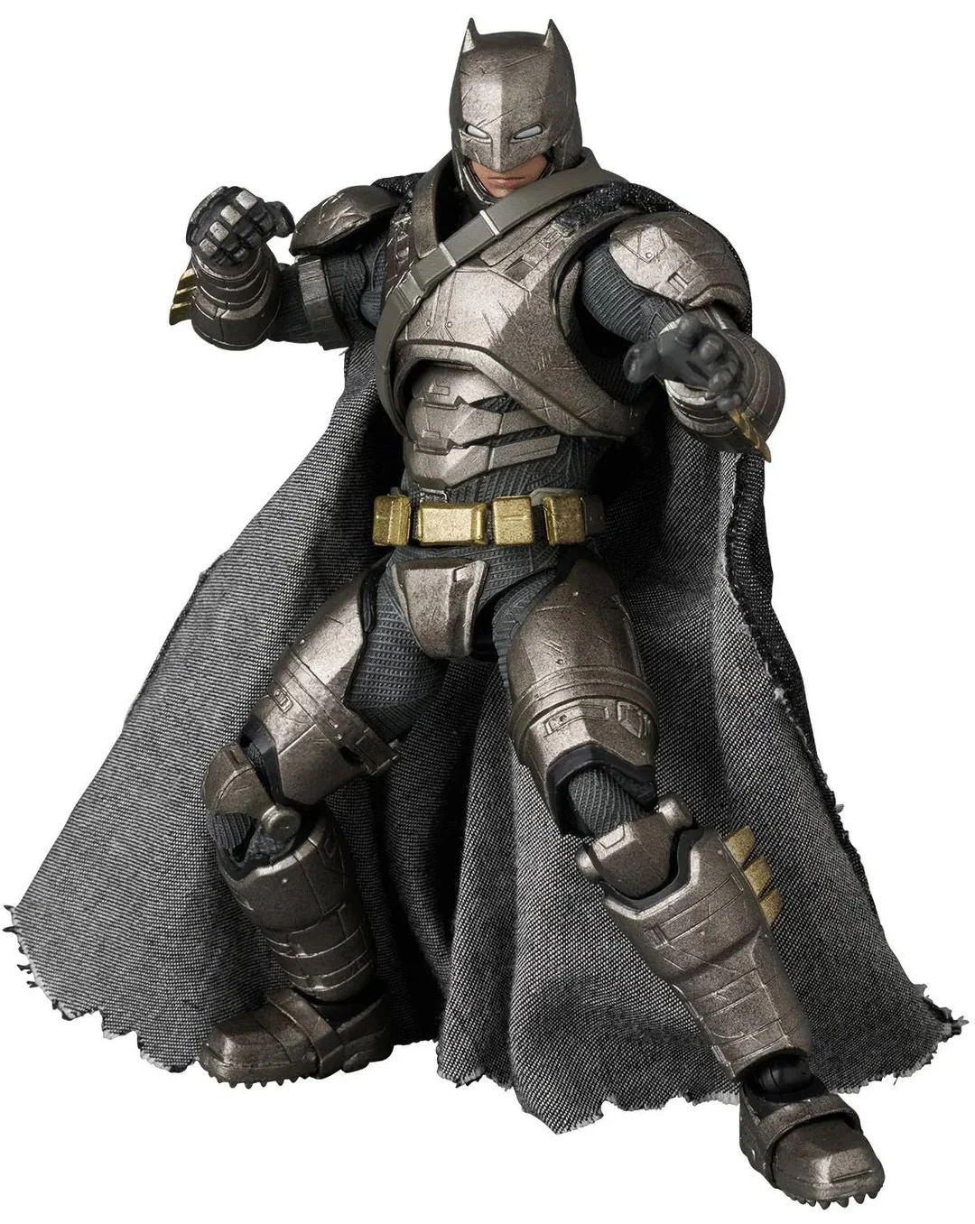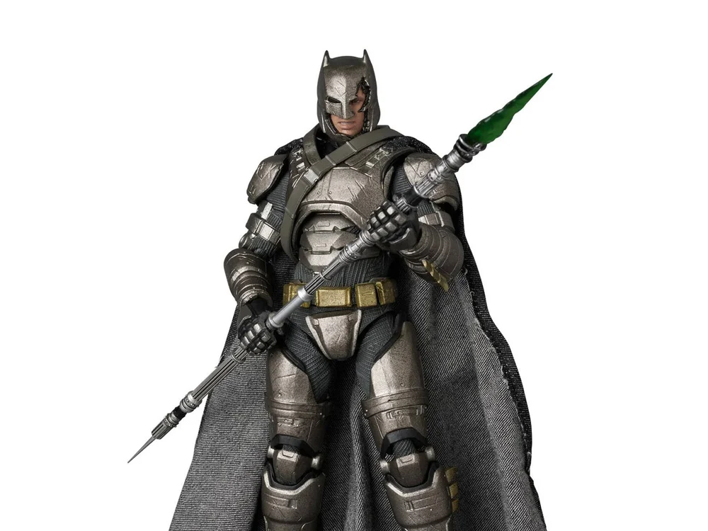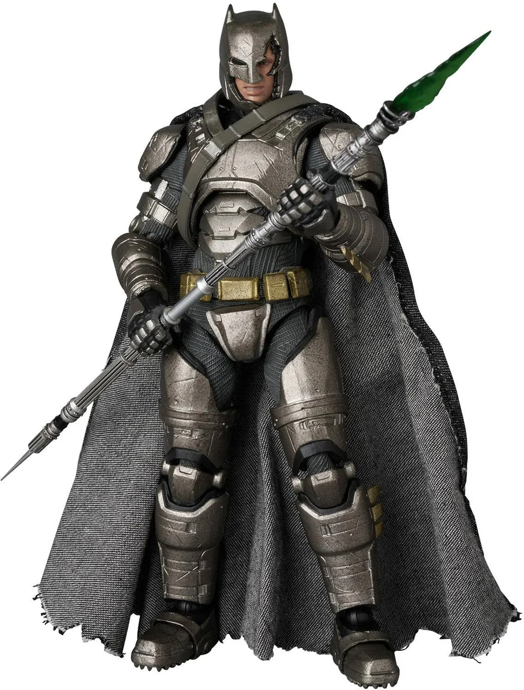 ¿Quién estará solo tras la batalla entre el Caballero Oscuro y el Hombre de Acero? Medicom Toy se enorgullece de presentar una nueva entrega en la línea favorita de los fans MAFEX con el Batman Blindado. Basado en su aparición en la exitosa película Batman v Superman: El amanecer de la justicia, Batman ha equipado una nueva armadura encima de su Batsuit para enfrentarse al casi imparable Superman en un enfrentamiento para la historia. Diseñado con la articulación dinámica de MAFEX y rebosante de detalles creativos, esta figura de acción viene equipada con la característica pistola de gancho de Batman y su lanza de Kyrptonite que dará un final impresionante al enfrentamiento. ¡Es hora de elegir tu bando y encargar tu figura hoy mismo!