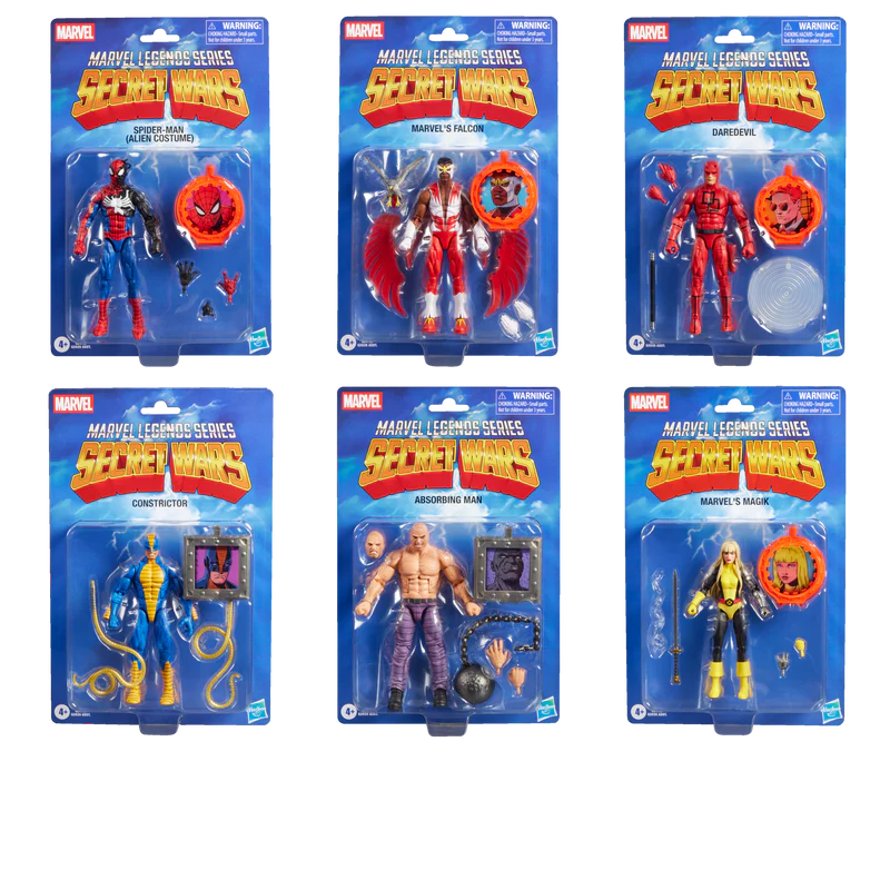 El set de 6 de Marvel Legends Secret Wars Wave 2 incluye 6 figuras de acción con cartón individual
