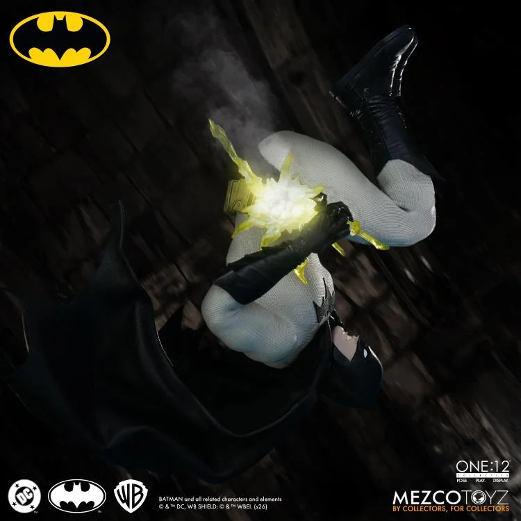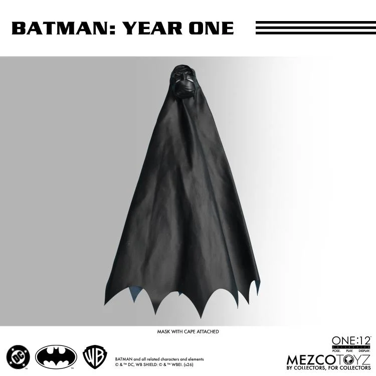 Equipado con un arsenal experimental, Batman viene preparado con batarangs, explosivos, una cerbatana con efecto de dardo, un dispositivo de grabación, un foco y accesorios adicionales que recrean momentos clave del Año Uno.
