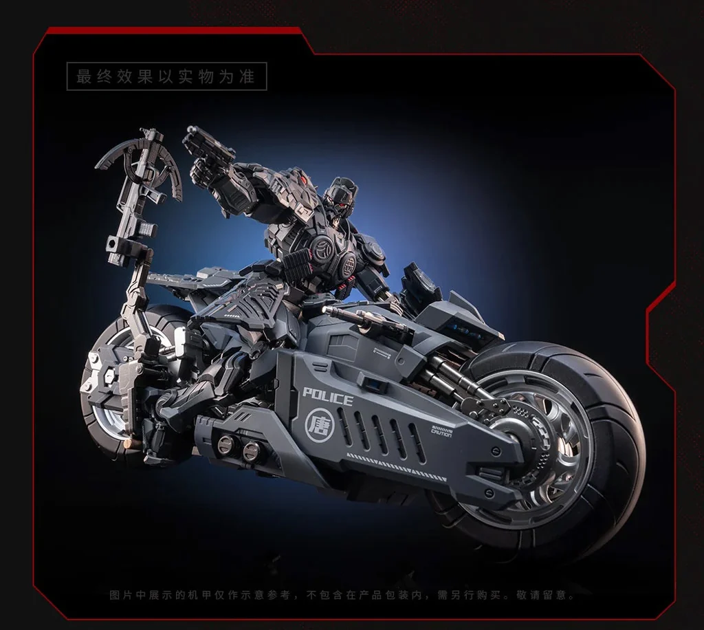 MOSHOW Toys patrulla el futuro con su nueva serie Ghang’an Guard. De pie a escala 1/12, estos mechas superarticulados recorren las calles buscando impartir justicia a todos los que se atreven a amenazar la paz. – Motocicleta mostrada vendida por separado.