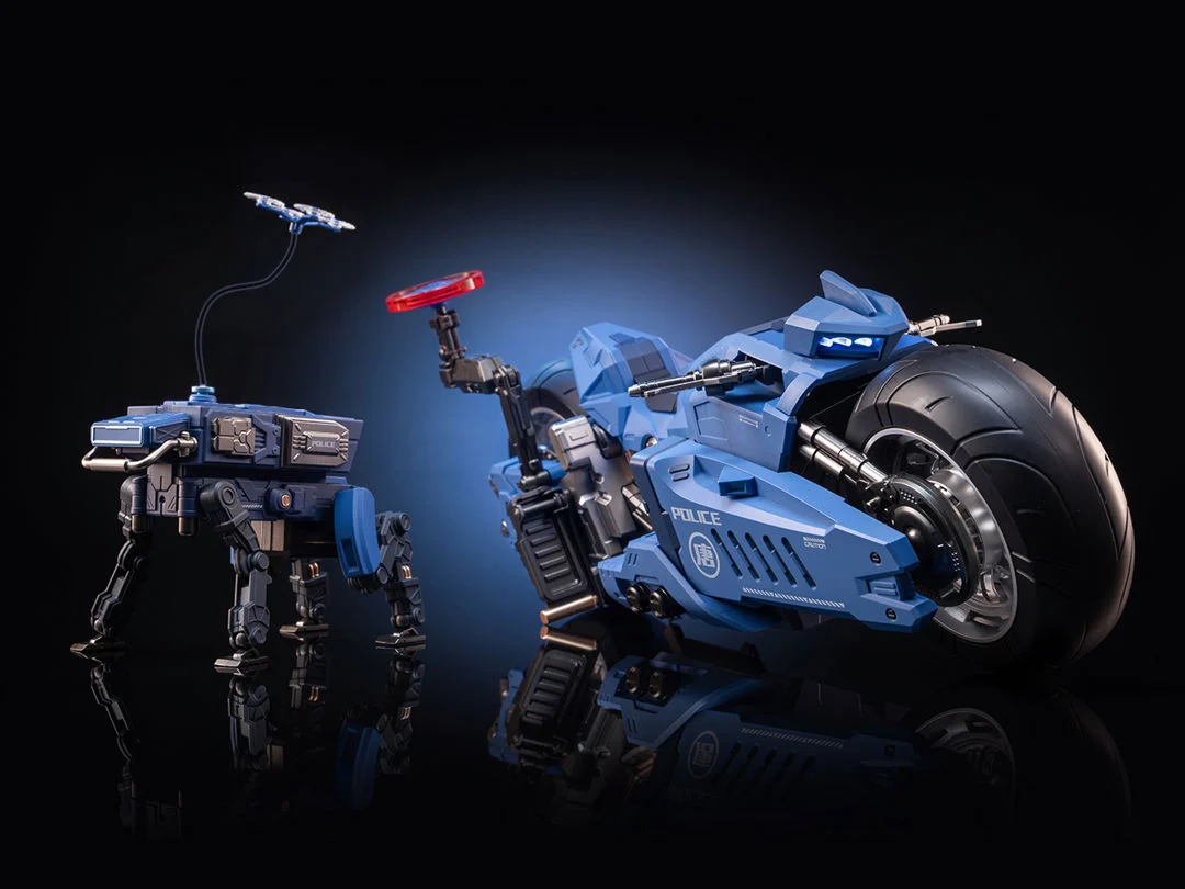 MOSHOW Toys patrulla el futuro con su nueva serie Ghang’an Guard. De pie a escala 1/12, estos mechas superarticulados recorren las calles buscando impartir justicia a quienes se atreven a amenazar la paz. – Con su moto conectada, la plaga de las calles debe estar atenta al juicio instantáneo con ruedas.