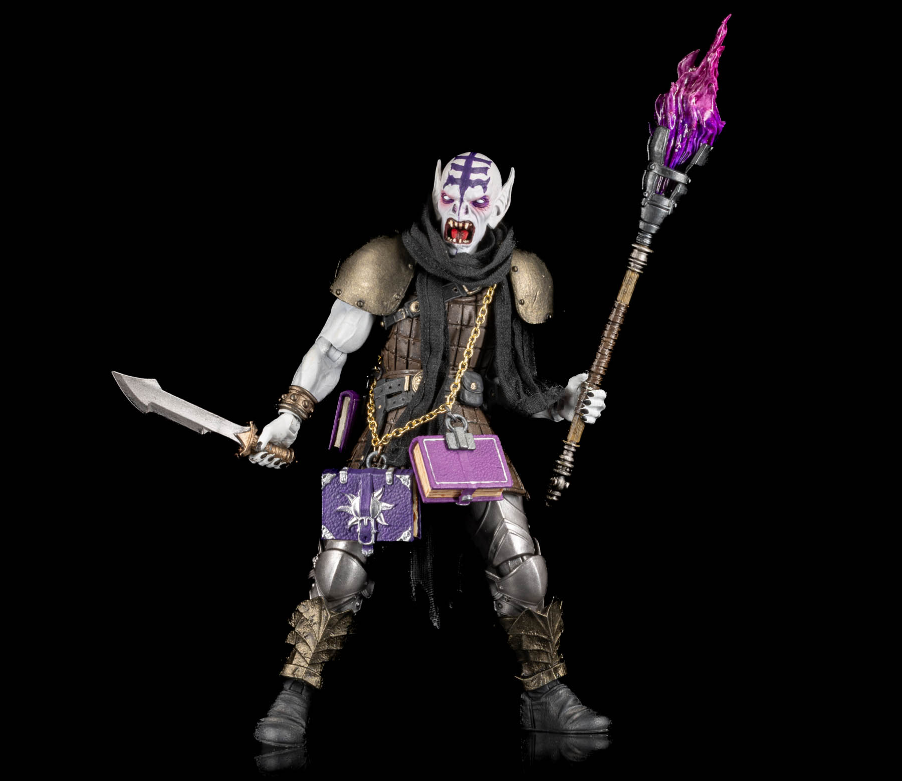 ¡Mejora tus campañas de Mythic Legions: The Roleplaying Game con el paquete de personajes Mythic Legions: The Roleplaying Game Vampire Loremaster! Para usarse con figuras base, este pack incluye una cabeza de lorecaster, una parte inferior de figura, brazos, 2 pares de manos, una linterna y un collar de libro de lorecaster – la figura base no está incluida.