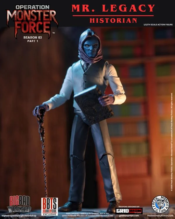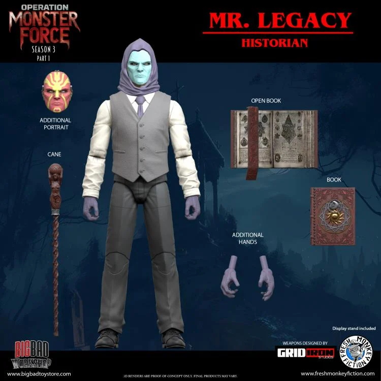 Cada figura de acción de Operation: Monster Force a escala 1:12 incluye más de 20 puntos de articulación e incluye accesorios como: retratos alternativos, manos intercambiables, además de una base de lápida de Operation: Monster Force para posar y exhibir fácilmente.