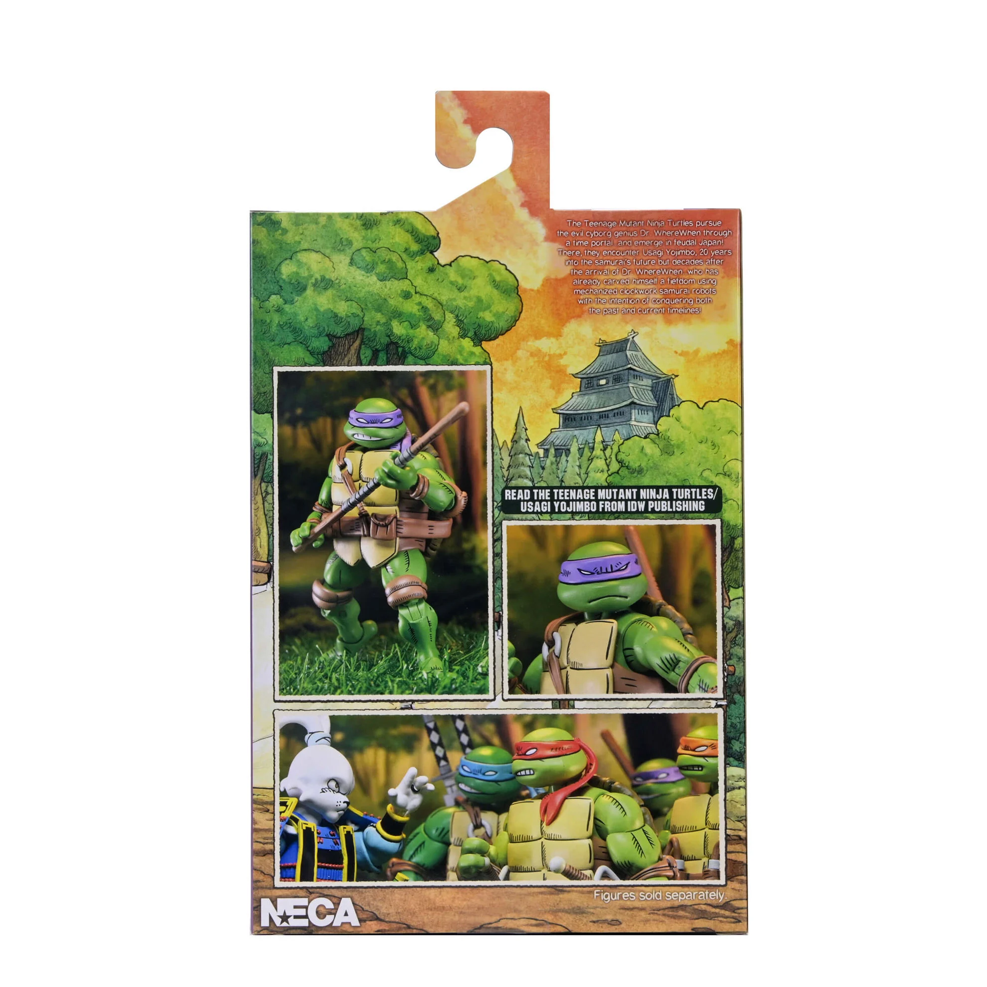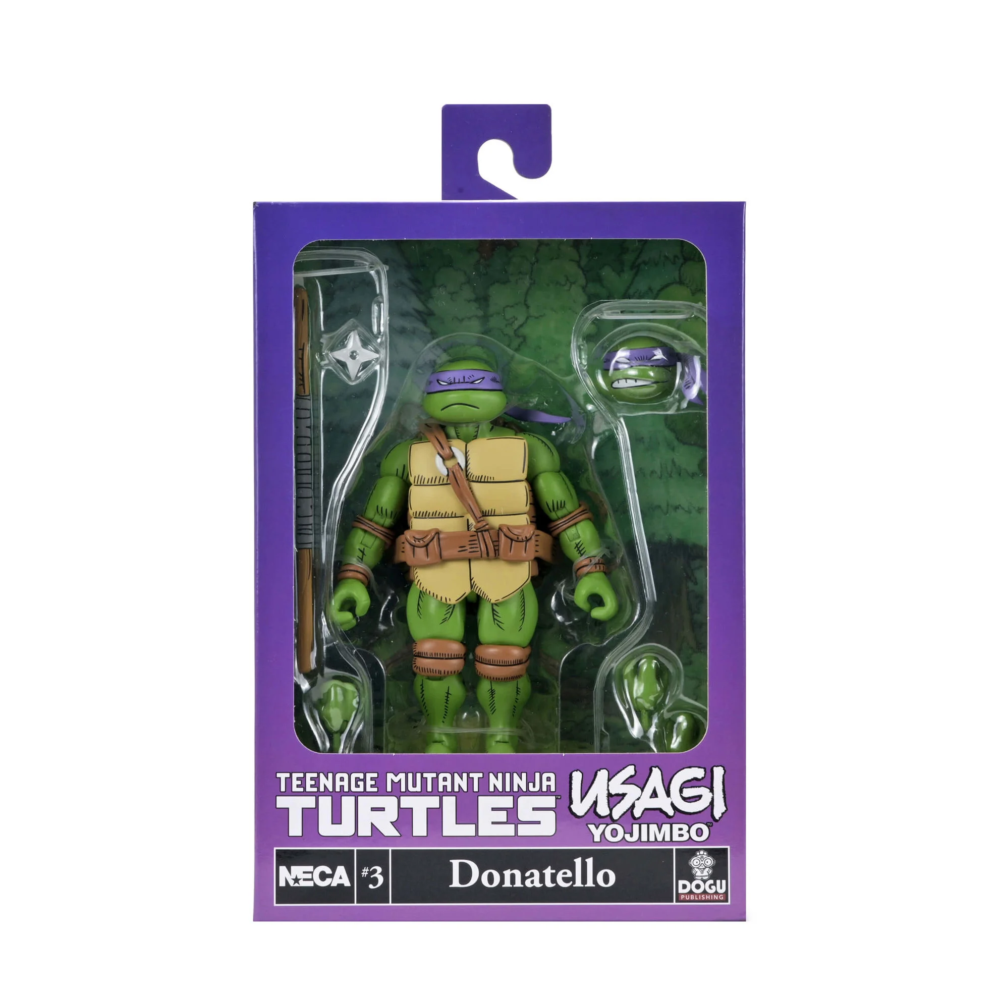 ¡Celebra más de 40 años de cómics de las Tortugas Ninja y de Usagi Yojimbo! Basada en la obra del legendario artista Stan Sakai y producida en colaboración con Dogu Publishing, este Ultimate Donatello presenta esculturas completamente nuevas y un auténtico deco de cómic estilizado. La figura de acción NECA a escala 7 pulgadas incluye cabezas y manos intercambiables y su característico bastón bo. Viene en un embalaje de caja de colección con solapa frontal que se abre.