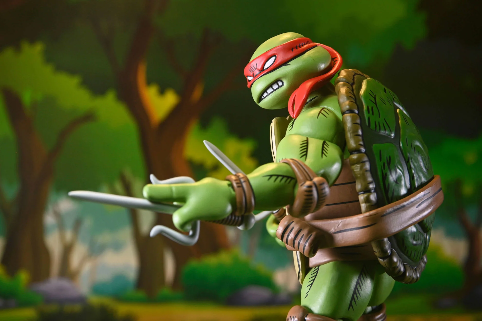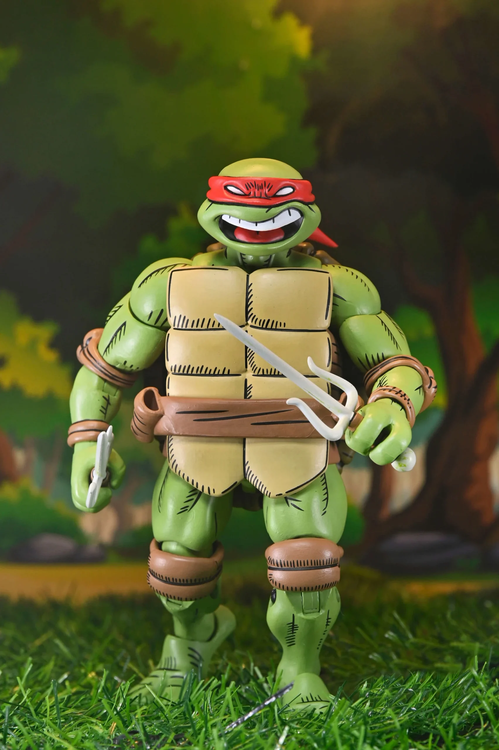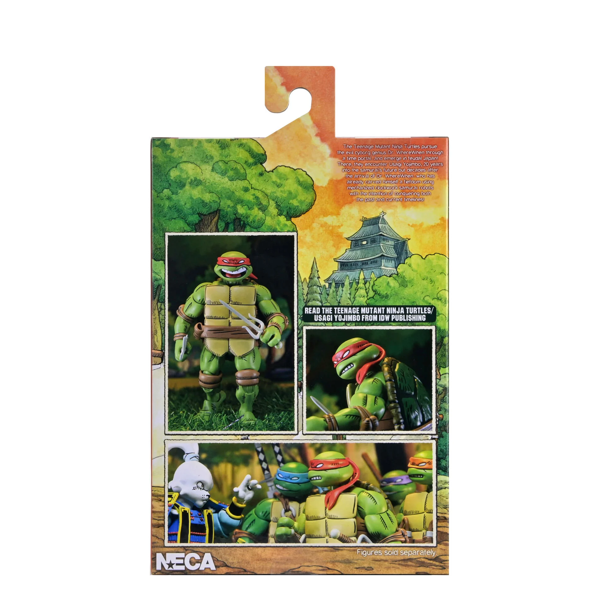 ¡Celebra más de 40 años de cómics de las Tortugas Ninja y de Usagi Yojimbo! Basada en la obra del legendario artista Stan Sakai y producida en colaboración con Dogu Publishing, esta Ultimate Raphael presenta esculturas completamente nuevas y un auténtico deco de cómic estilizado. La figura de acción NECA a escala 7 pulgadas incluye cabezas y manos intercambiables y su característico sai gemelo. Viene en un embalaje de caja de colección con solapa frontal que se abre.