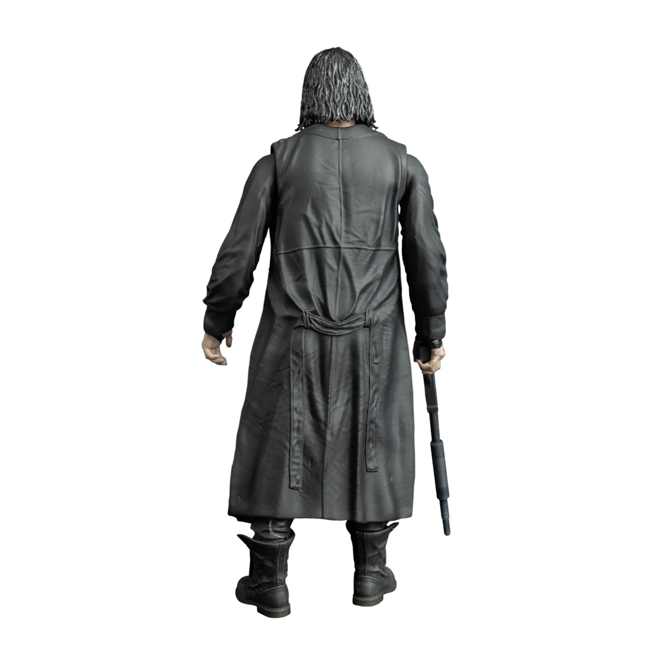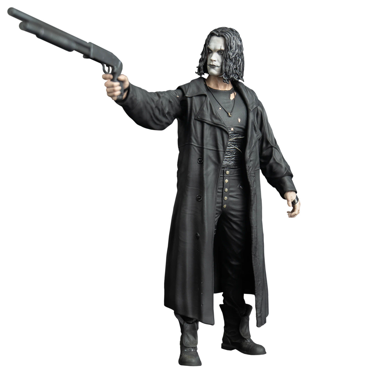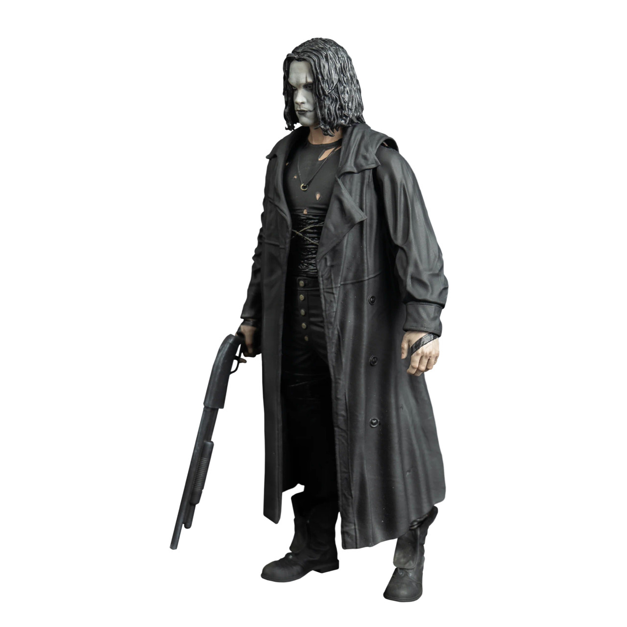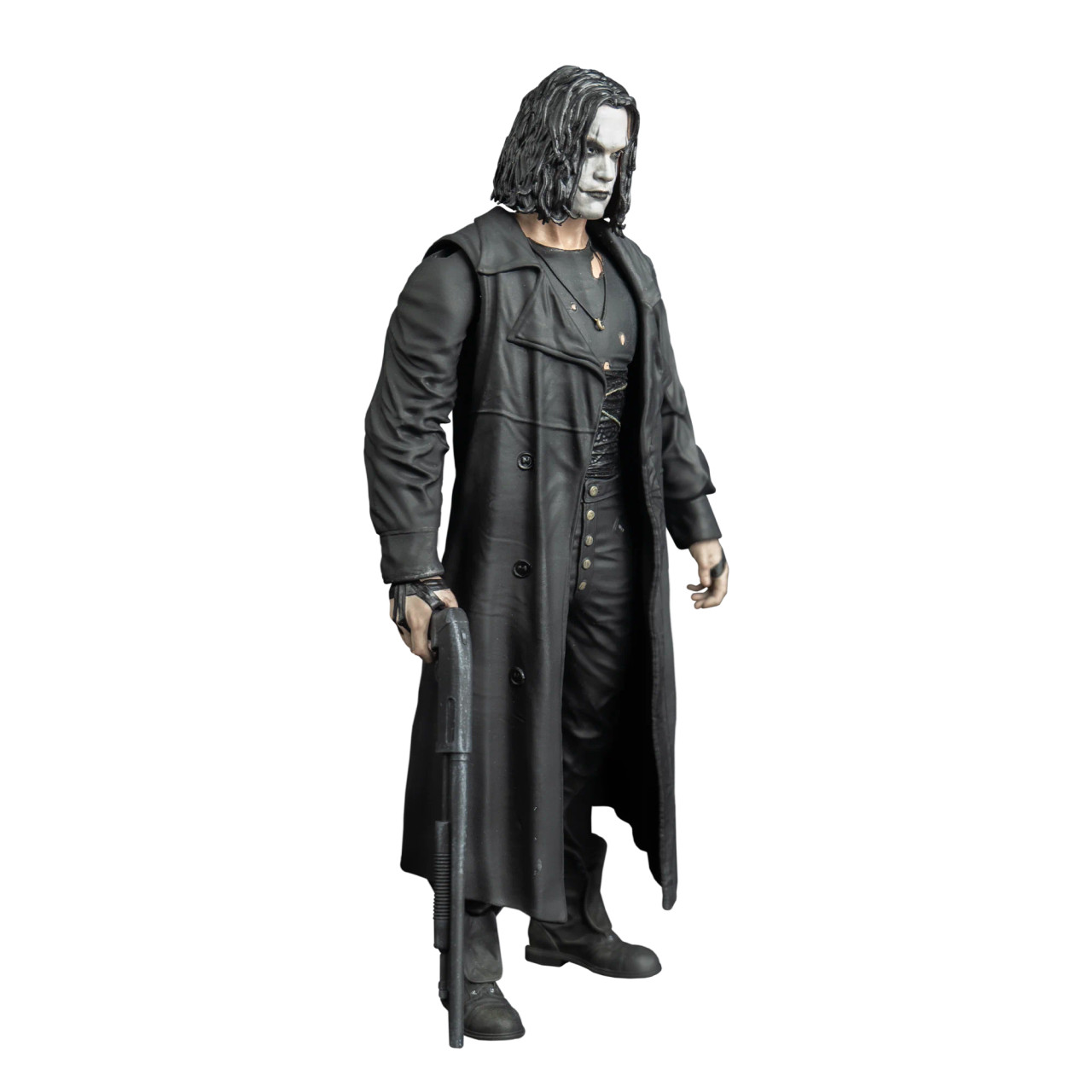 Incluye: La figura Crow a escala 8″ con manos intercambiables, brazos intercambiables, abrigo extraíble y accesorio para escopeta.