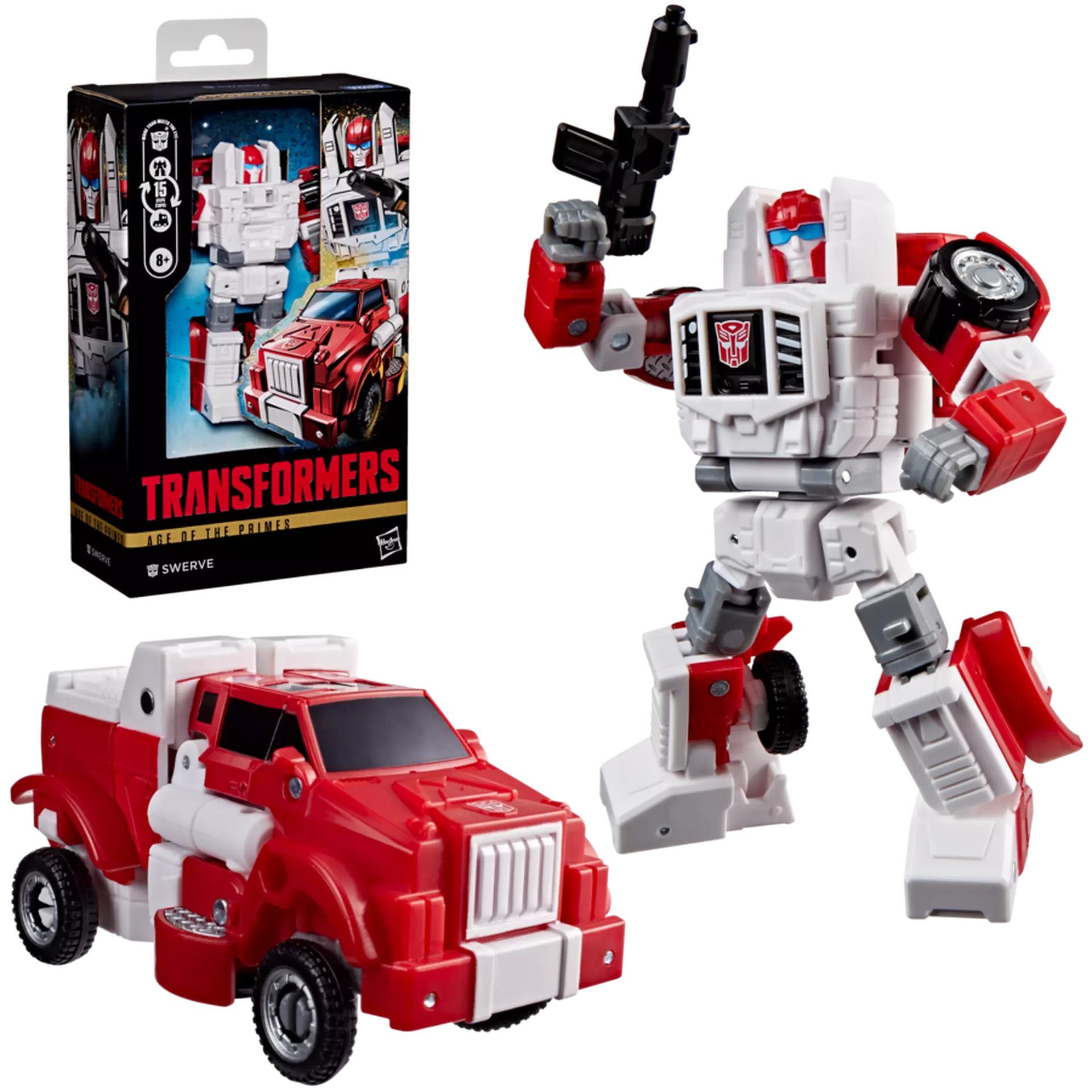 - Esta figura de Transformers de Swerve de la Era de los Primos presenta decoro y detalles inspirados en el universo de Transformers.